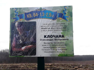 дерев на площах зрубів в урочищі «Великий ліс», закарбування у могутності та величі дубового лісу пам’яті про хороброго воїна та відважного захисника